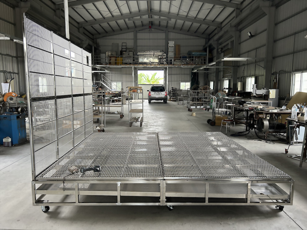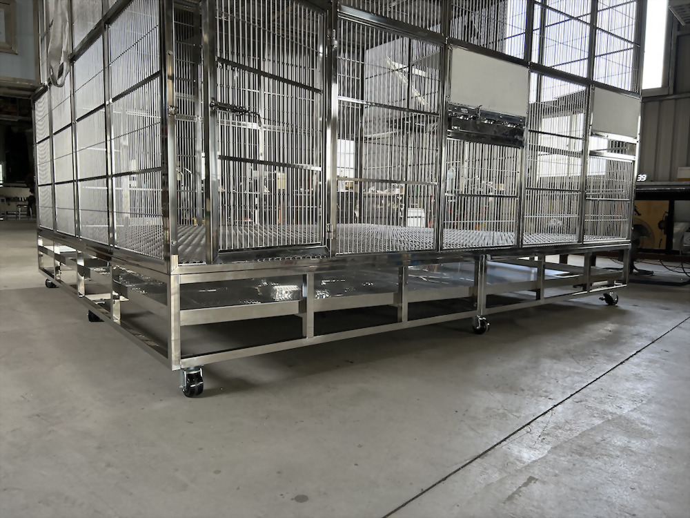 底部採用白鐵高床網搭配白鐵骨架,是人都可以進去踩踏的金剛籠。