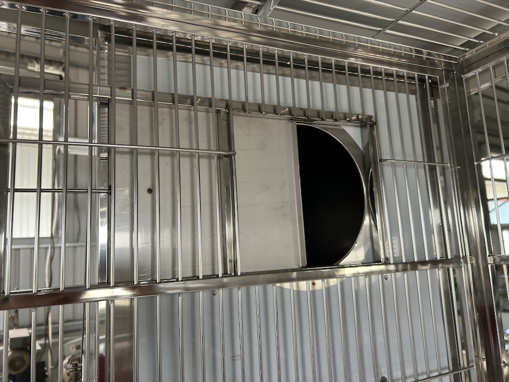 一條龍服務,客戶一併訂購金剛白鐵巢箱,籠體開洞,並貼心設計開關滑門。