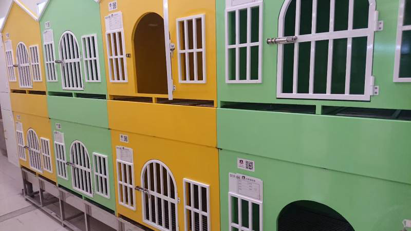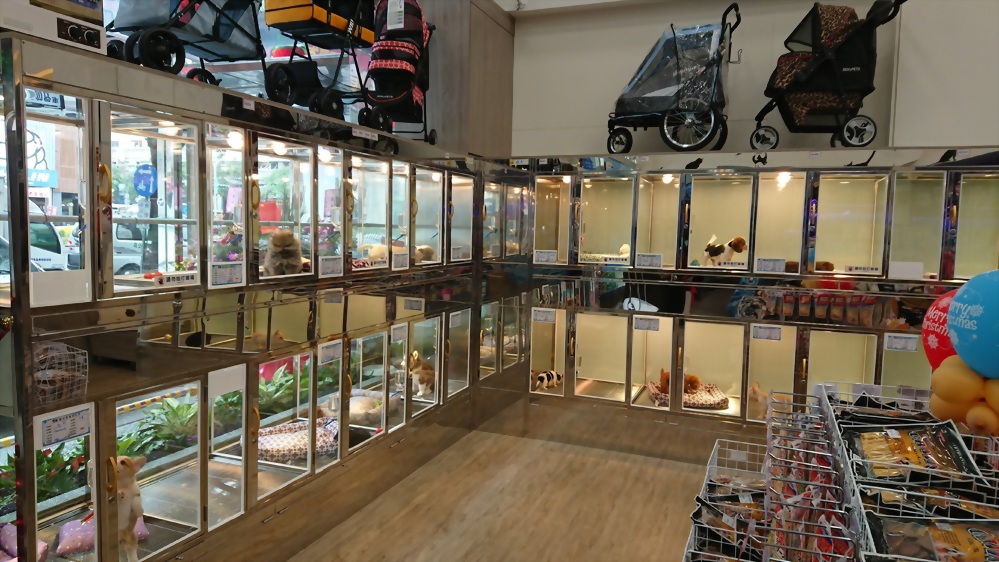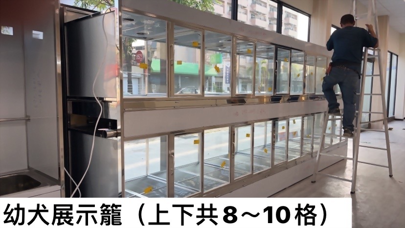 全透明的寵物展示籠,既是觀賞更是招攬客戶最佳利器。